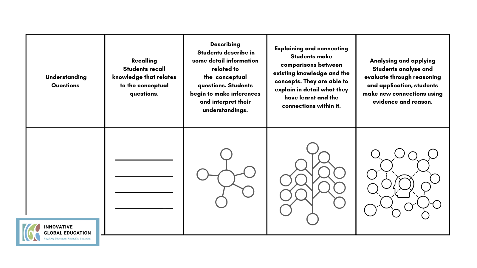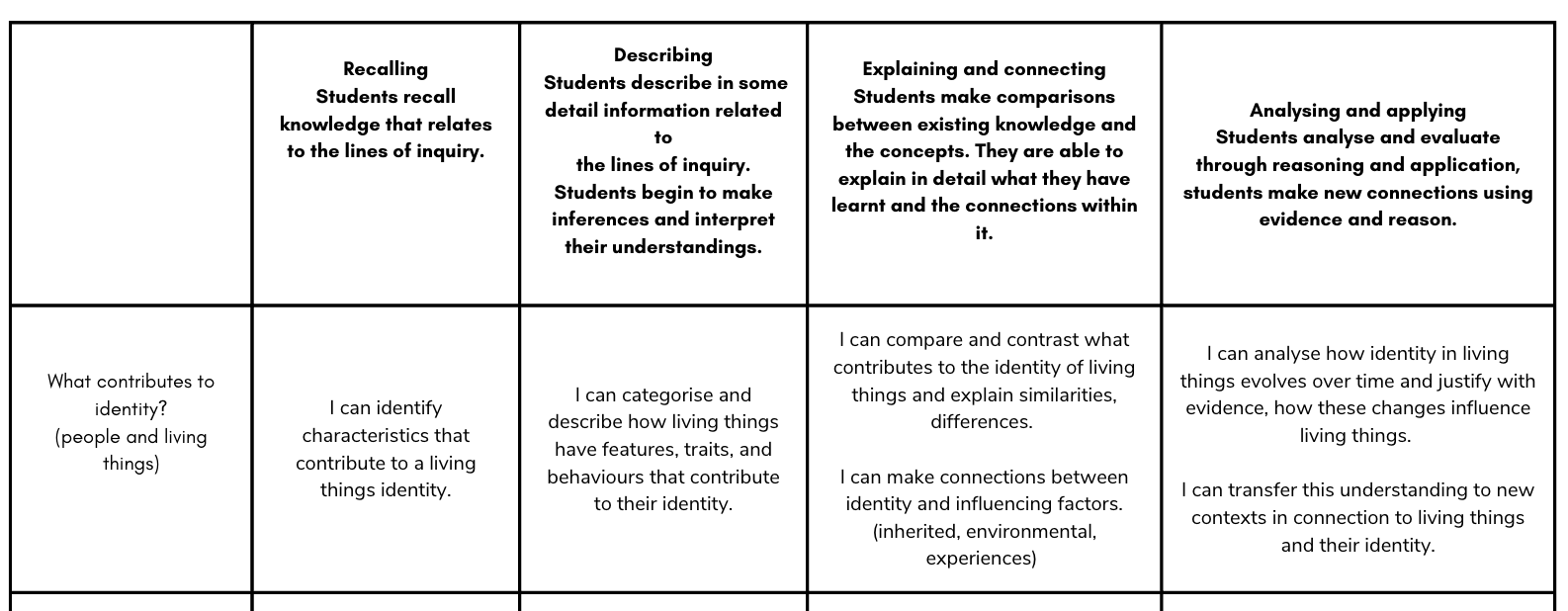 From the example above, you can see how understanding develops across the conceptual questions. The rubric is revisited throughout the unit to ensure learning is experienced as a continuous journey rather than a single event.
