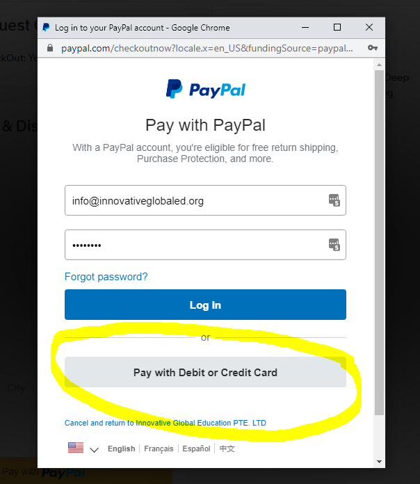After adding a seat to your cart - when you reach check out you can pay by credit or debit card - look for the guest checkout as per the image below.